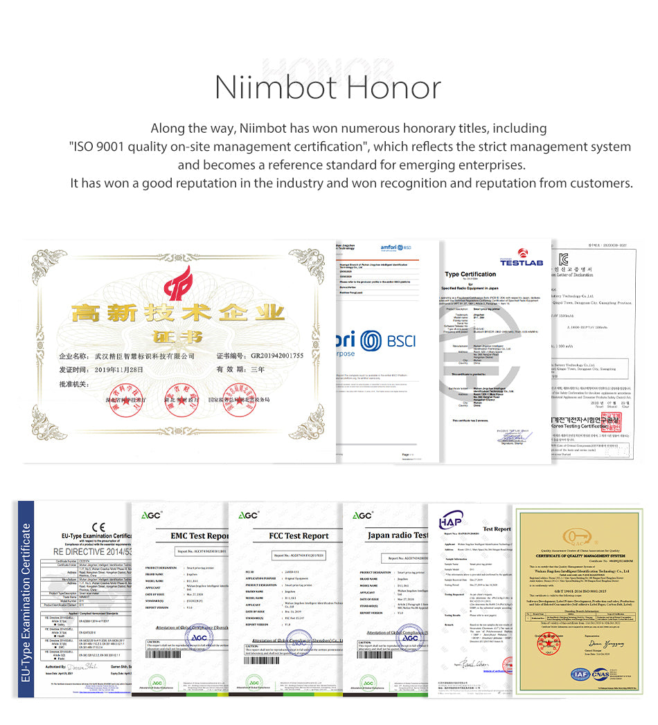 NIIMBOT always adheres to the needs of users and the core of independent development. Also NIIMBOT has strong technical strength and more than 16% of its annual revenue is used for R&D investment. The R&D center has hundreds of high-skilled talents with the background of well-know global enterprises. The technological innovation covers many fields, such as data acquisition, RFID, smart printing, software development, etc. Up to now, the company has 33 registered trademarks,31 software copyrights and 60 hardware patents.